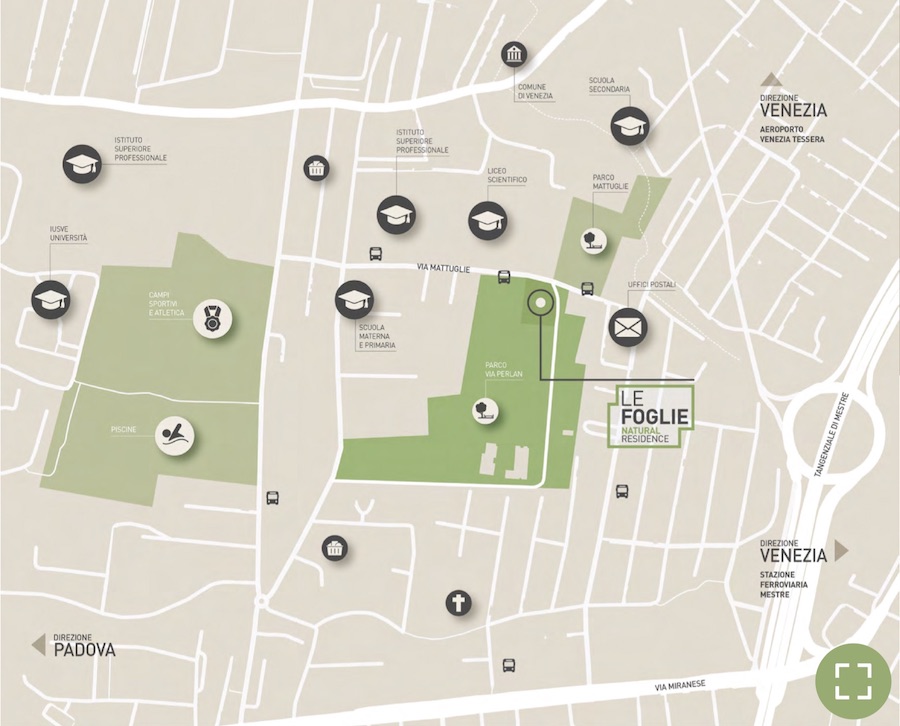Il residence è situato ne “La Gazzera”, uno dei quartieri storici di Mestre. Leggermente discostato dal cuore pulsante della città, si trova in un’area tranquilla e sicura ma al tempo stesso vicina ai principali servizi urbani come l’Ospedale, la Stazione dei treni, l’Aeroporto e l’ingresso del nuovo tratto autostradale A57.